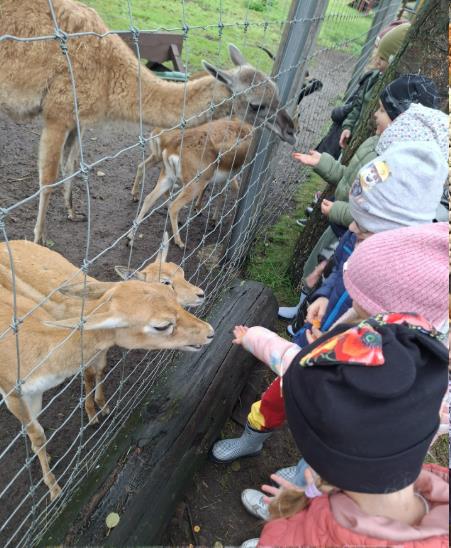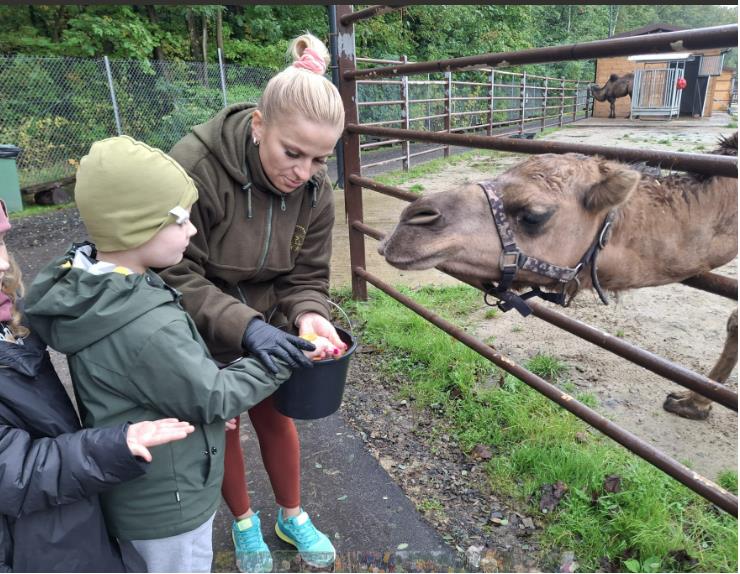 W październiku wybraliśmy się na wycieczkę do Dobronianki – niezwykłego miejsca pełnego natury, zwierząt i wspaniałej zabawy! Spacerowaliśmy po pięknych alejkach, oglądając różnorodne zwierzęta , które chętnie pozowały do zdjęć. Spotkaliśmy między innymi wielbłądy, alpaki, kózki i króliki. Podczas spaceru mieliśmy okazję zobaczyć piękną wystawę dyń. Każdy mógł znaleźć coś dla siebie – jedni podziwiali przyrodę, inni bawili się na placu zabaw lub karmili zwierzątka. Wycieczka do Dobronianki była nie tylko pełna atrakcji, ale też świetną lekcją o naturze i zwierzętach. Wszyscy wróciliśmy zadowoleni, uśmiechnięci i pełni pięknych wspomnień. To był naprawdę wspaniały dzień na świeżym powietrzu.